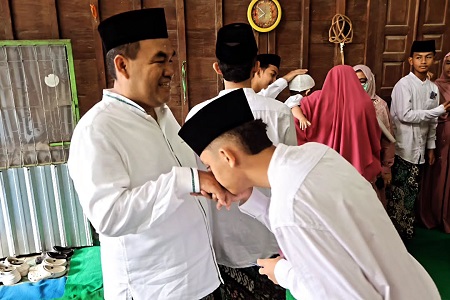 H. Arief Rohman saat mendapat sungkeman dari santri Pondok An Nur di acara open house di kediamnya Dk Seren, Ds Sendangwungu -Banjarejo