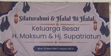 BLORA, GALAKSI-TV.COM : DALAM putaran arus perubahan yang kian cepat, tradisi silaturahmi tetap menemukan ruangnya yang hangat dan penuh makna. Hal itu tercermin dalam kegiatan Halal Bihalal keluarga besar Bani Maksum yang digelar di Graha Nusantara, Minggu (22/3/2026) yang dihadiri sekitar 250 anggota keluarga lintas generasi.