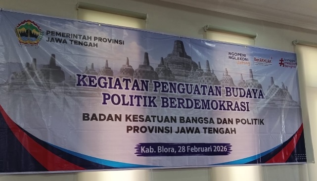 BLORA, GALAKSI-TV.COM : Penguatan budaya politik berdemokrasi tak bisa lagi sekadar seremoni. Badan Kesatuan Bangsa dan Politik Provinsi Jawa Tengah menegaskan pentingnya demokrasi yang inklusif, bermoral, dan berpihak pada rakyat. Hal itu mengemuka dalam kegiatan FGD (Focus Group Discussion), bertajuk “Budaya Politik Berdemokrasi ” di Gedung Sekretariat Daerah Pemkab Blora, Sabtu (28/2/2026).